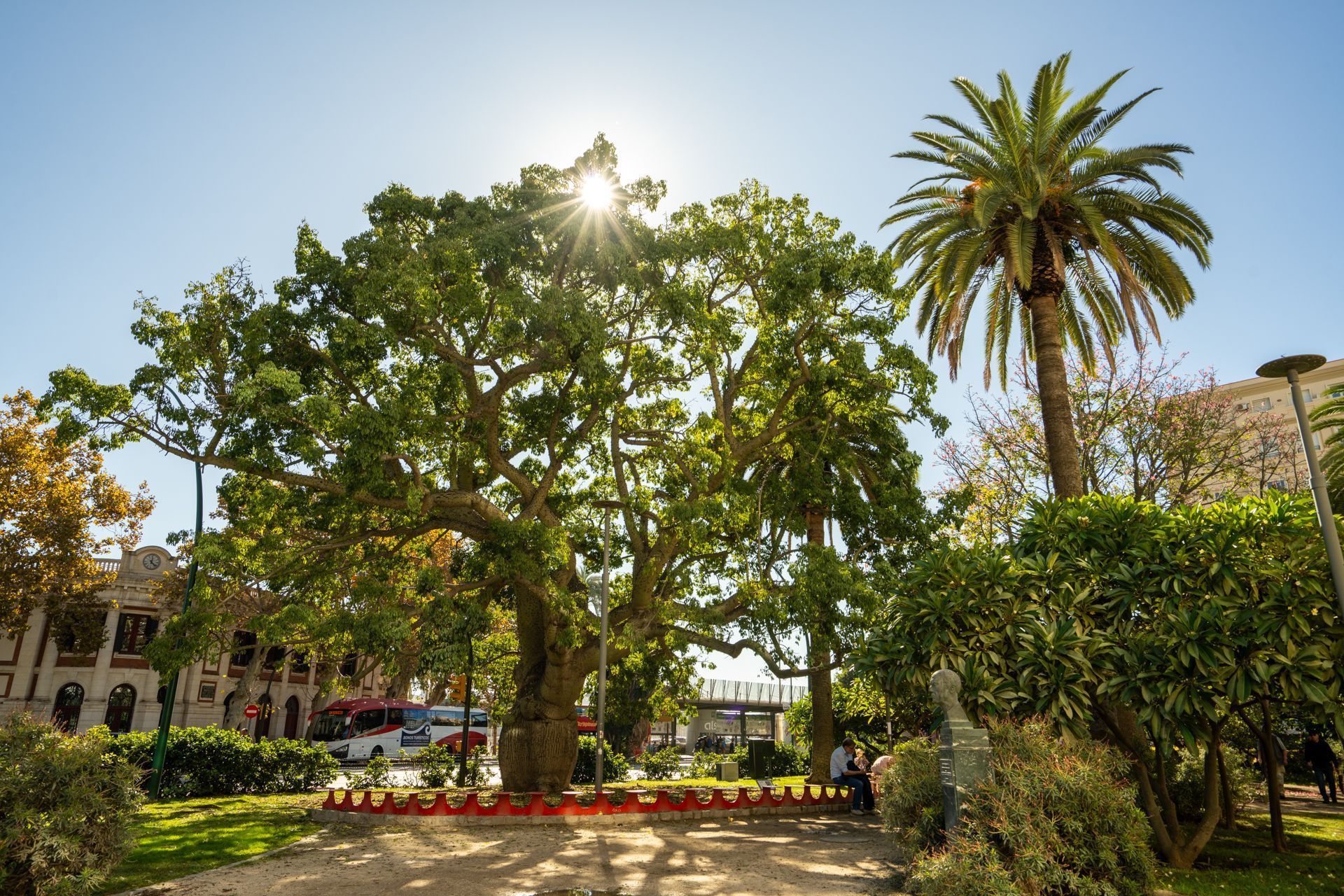 - un banco circular protector alrededor del "palo borracho"